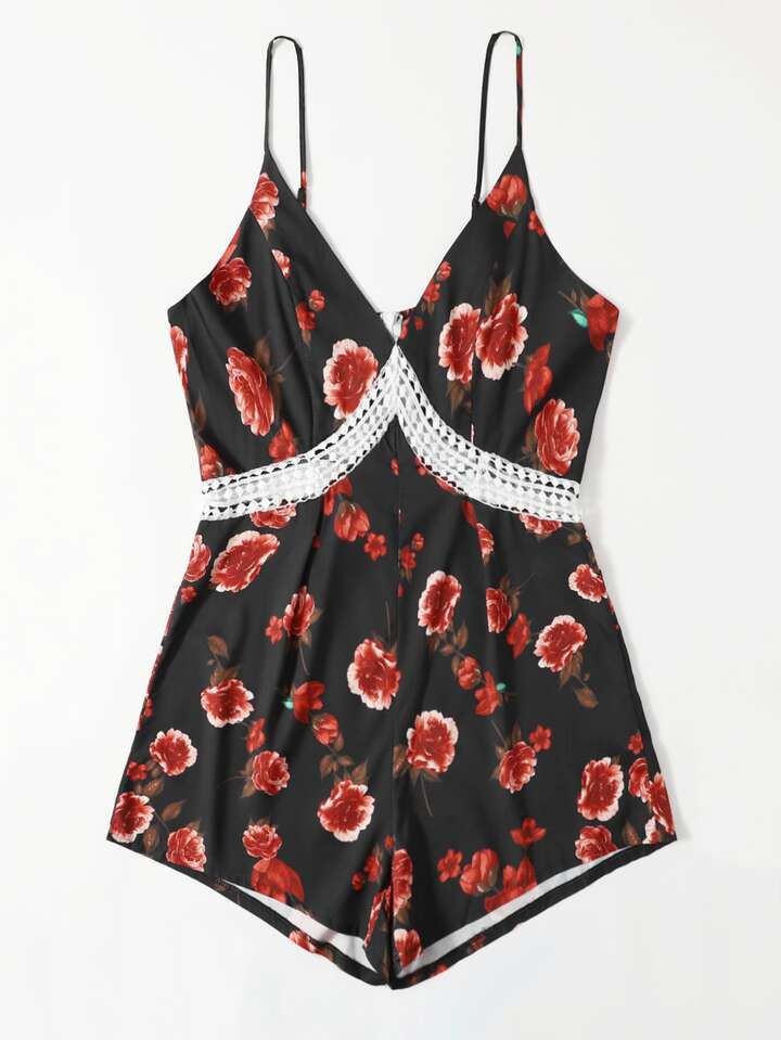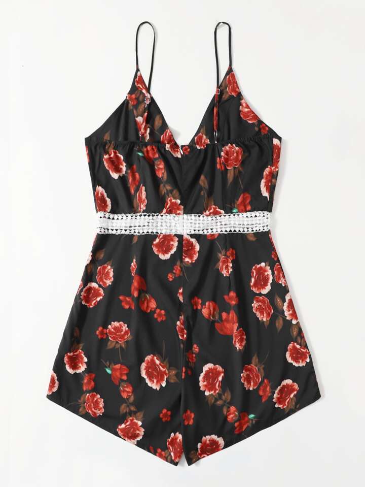رومبير كامي بلوحة دانتيل وبطباعة ازهار مقاس كبير