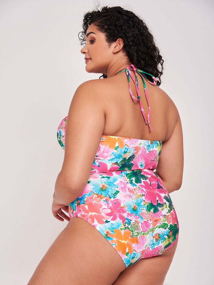 مقاس كبير ملابس سباحة قطعة واحدة طباعة الأزهار رباط