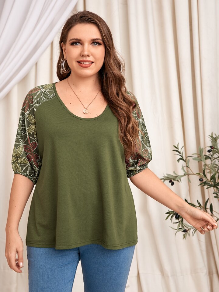 تي شيرت باكمام راجلان بطباعة زهر مقاس كبير