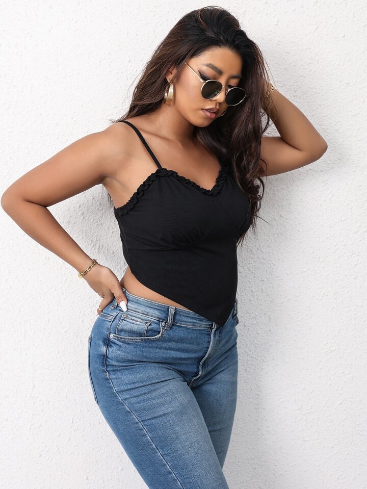 صدرية كامي ضيق مزركش حافة منديل مقاس كبير