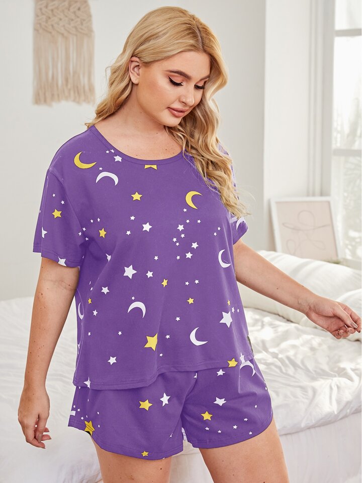تي شيرت نوم بطباعة جلاكسي مقاس كبير بدون شورت