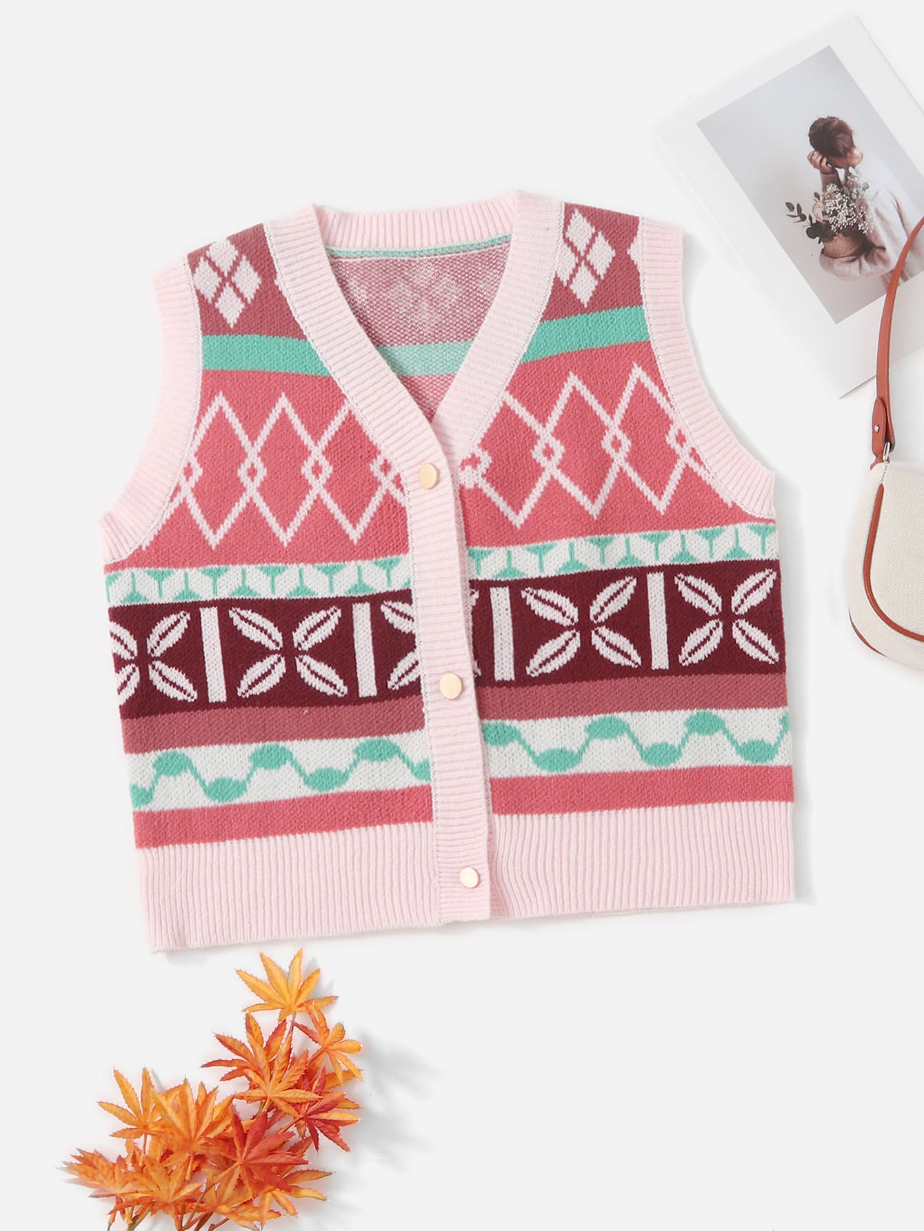 مقاس كبير صدرية ثقيلة نمط هندسي أزرار أمامية