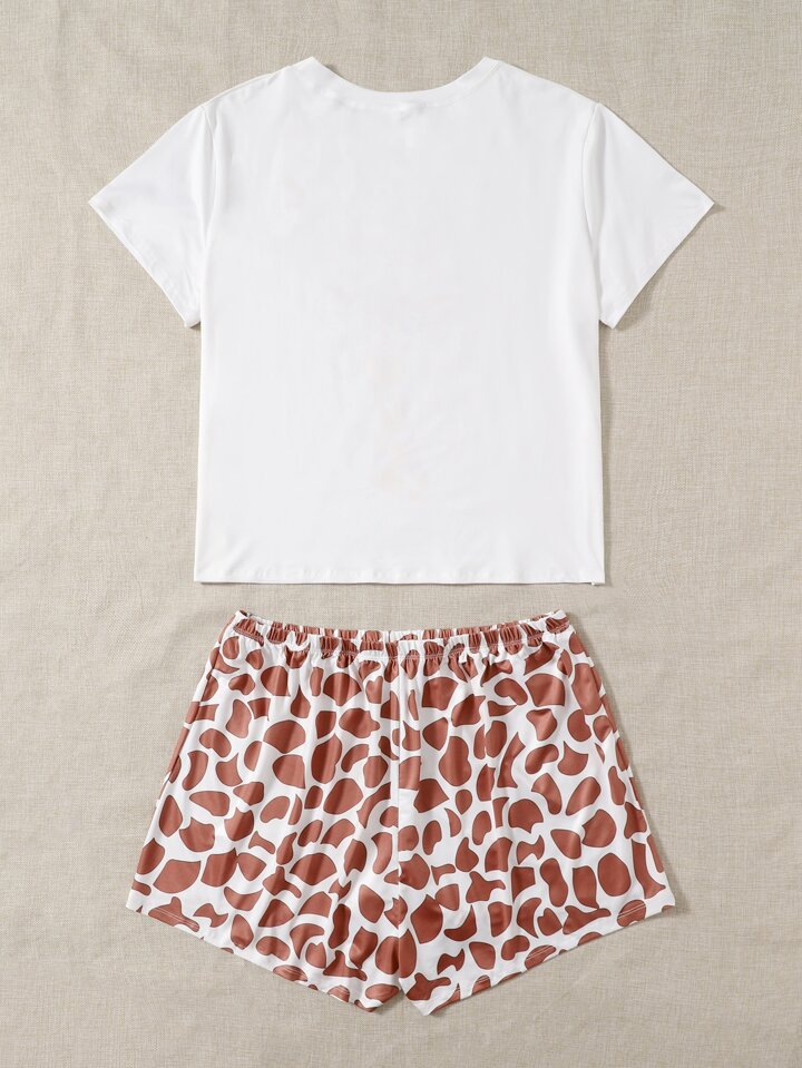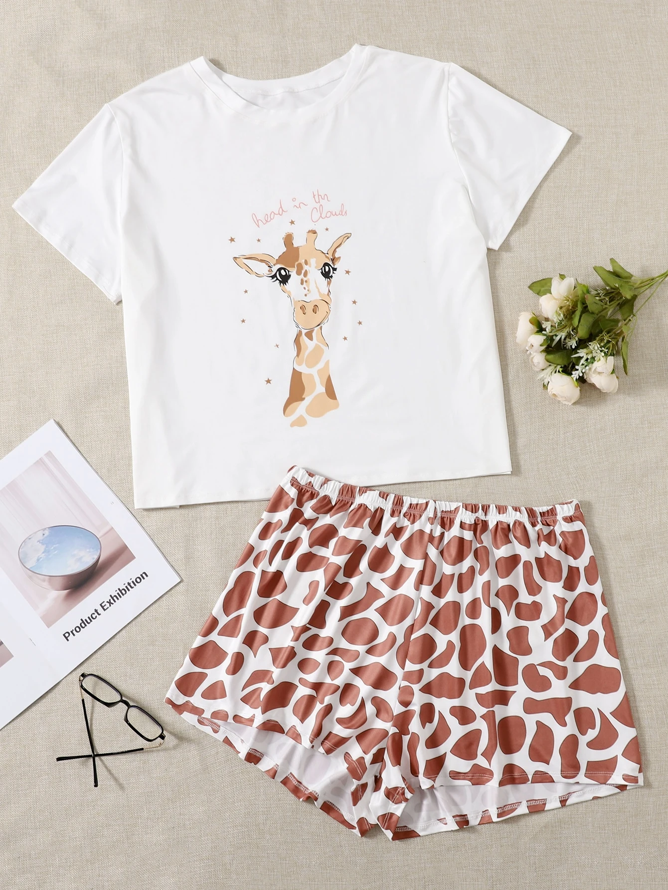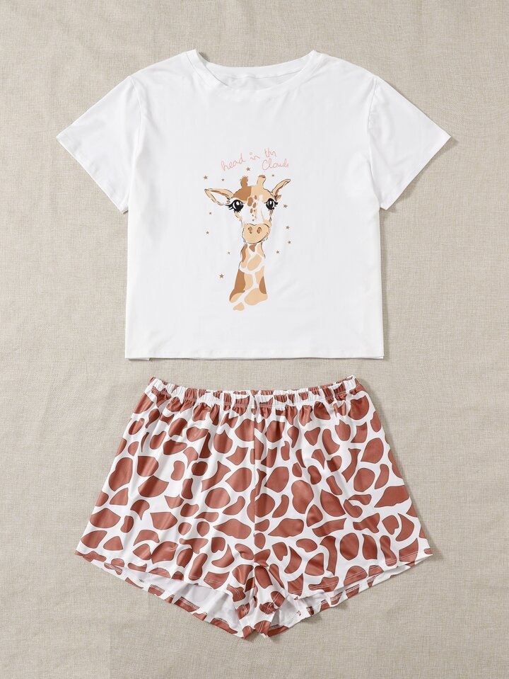 طقم بيجامة بجرافيك عبارة وزرافة مقاس كبير