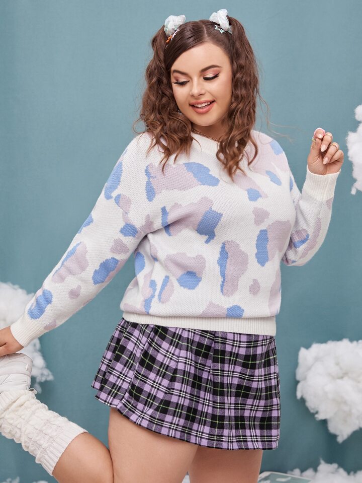 مقاس كبير سترات نمط جرافيك منخفض الاكتاف