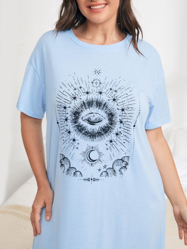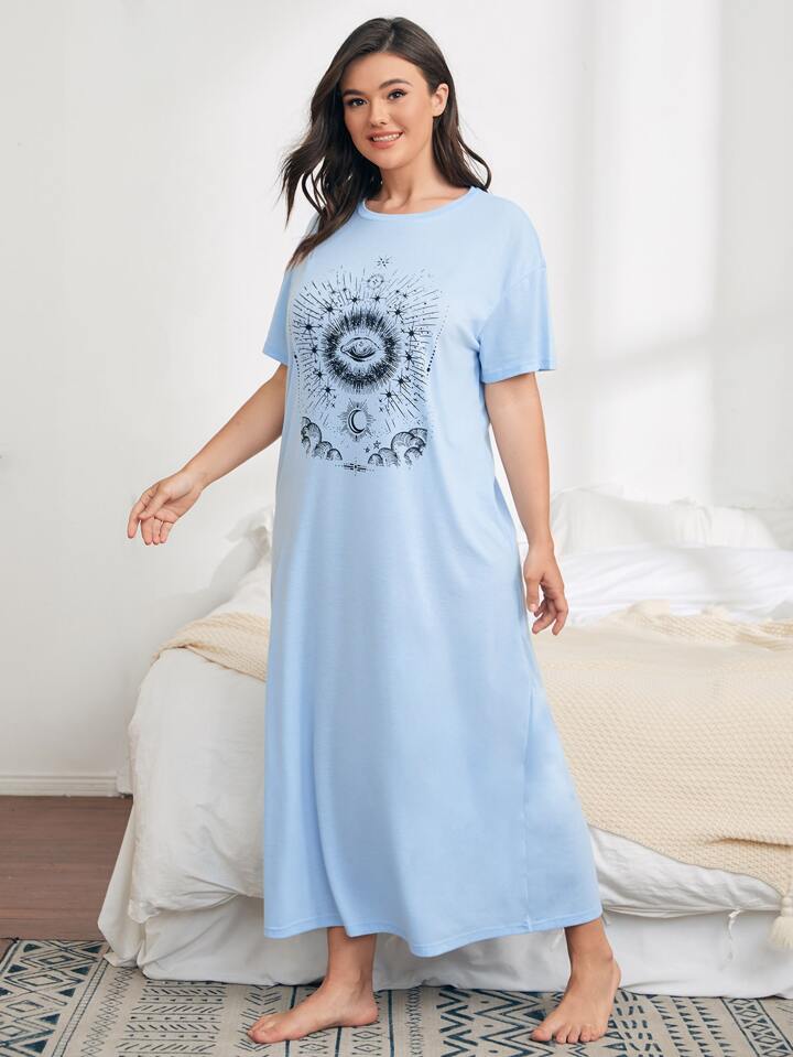 فستان بيجامة بطباعة جرافيك مقاس كبير