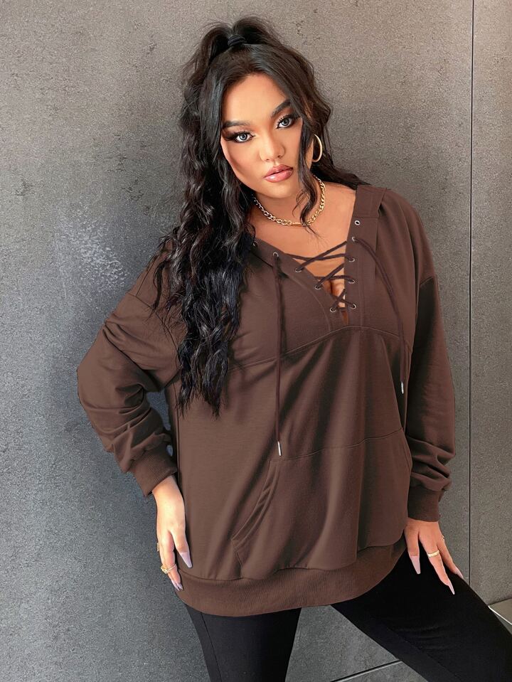مقاس كبير هودي عروة رباط منخفض الاكتاف جيب الكنغر