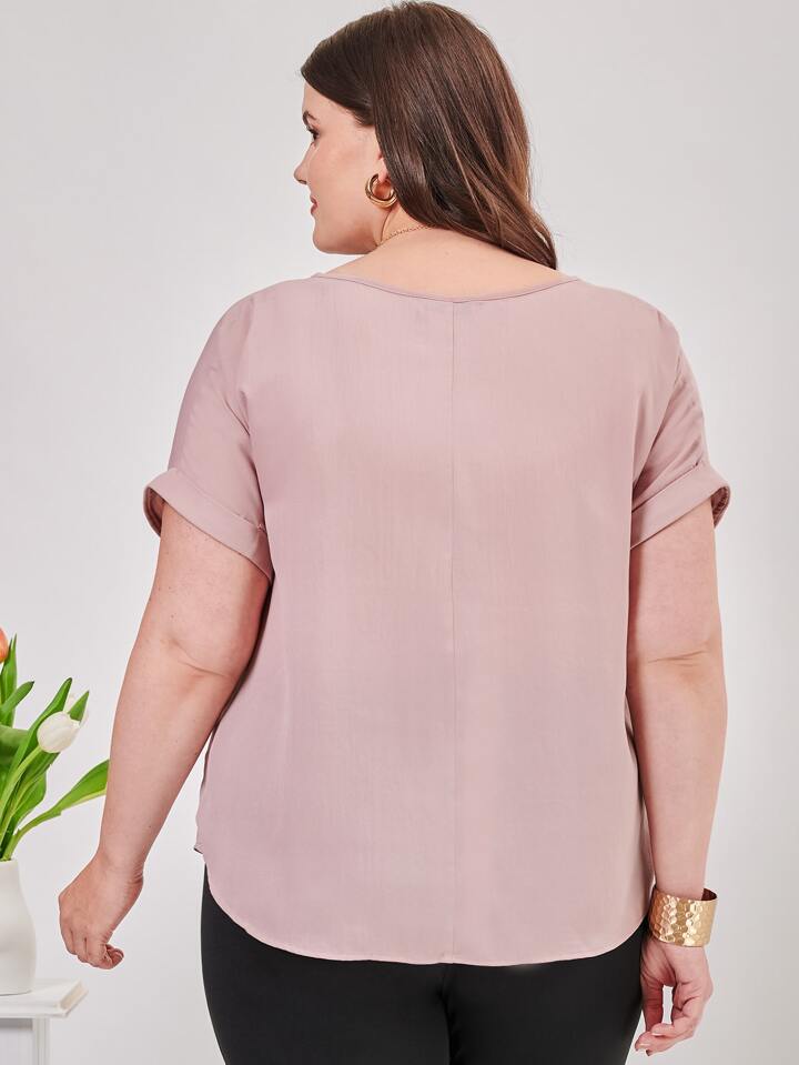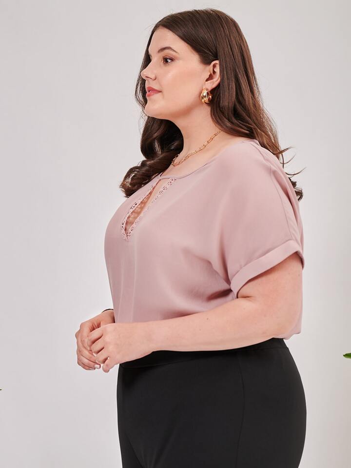لباس علوي بكفة ملتف وبعنق مفتوح بدانتيل مزخرف مقاس كبير