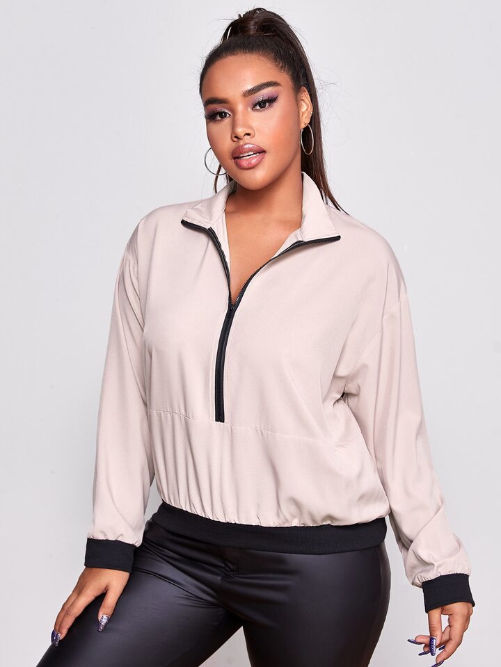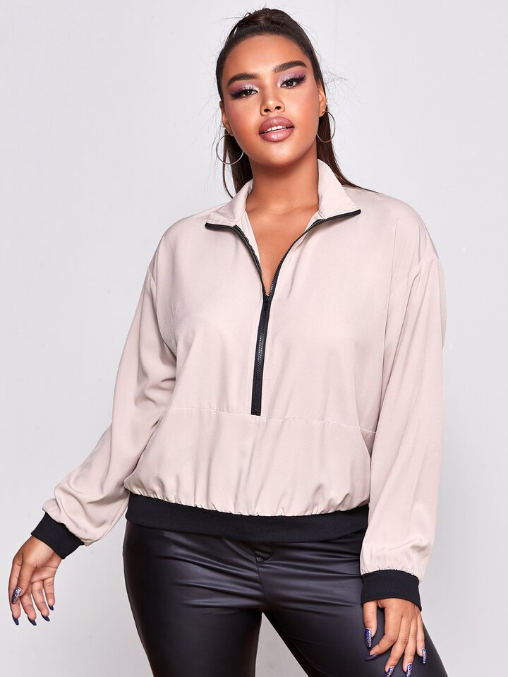 القميص الرياضي والياقة القمع بنصف السستة والقياس الكبير