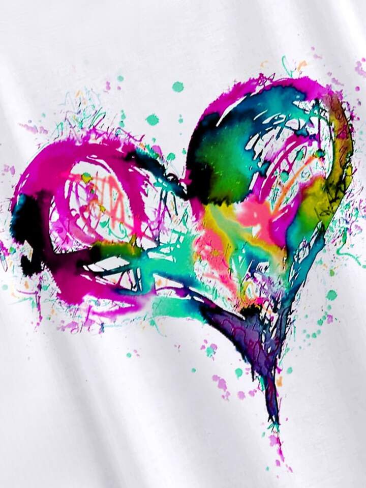 بلوزة أكمام خفافيش مزخرفة بطبعة القلب للصيف