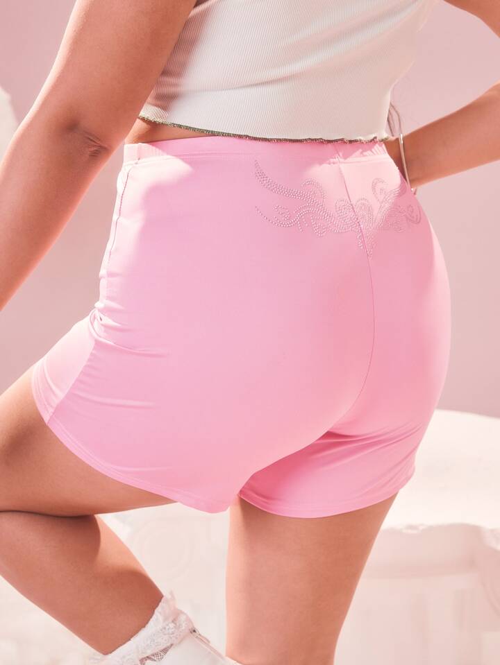 شورت ركوب الدراجات النارية قلب حجر الراين مقاس كبير