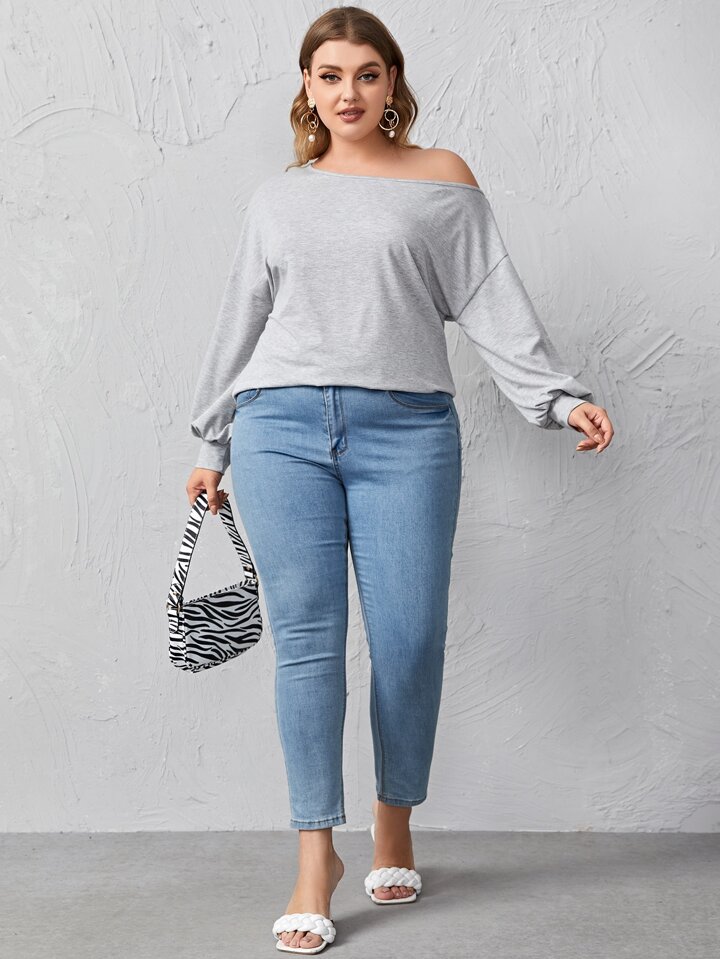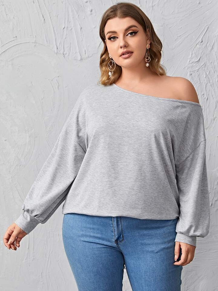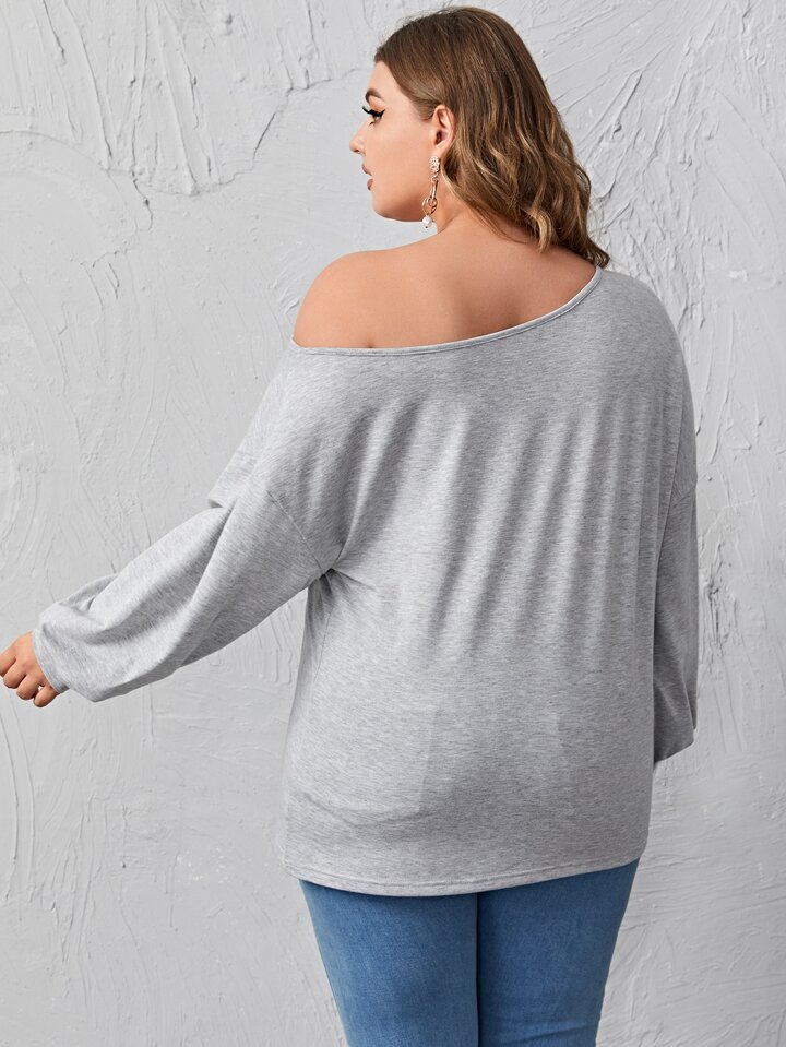 قميص ثقيل مقاس كبير بياقة عير متماثل رمادي مخلنج