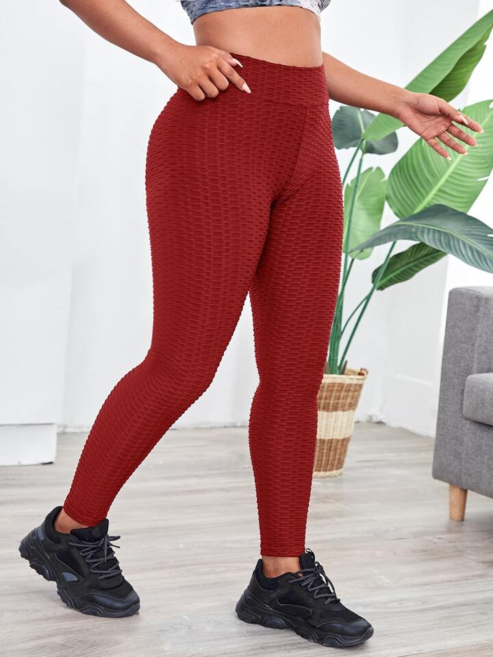 طماق رياضي ذوسطح مزخرف خلية نحل وبخصر عالي مقاس كبير