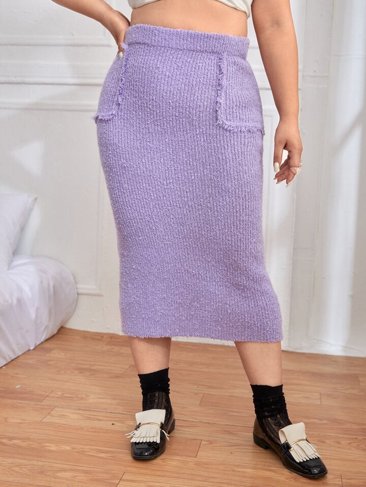 تنورة محبوك مقلم خام بخصر عالي مقاس كبير
