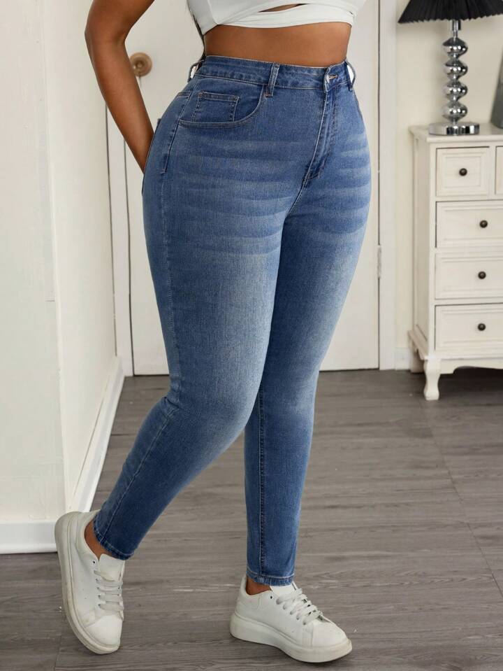 بنطلون جينز نحيل مقاس كبير وبخصر عالي