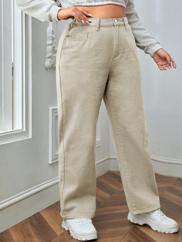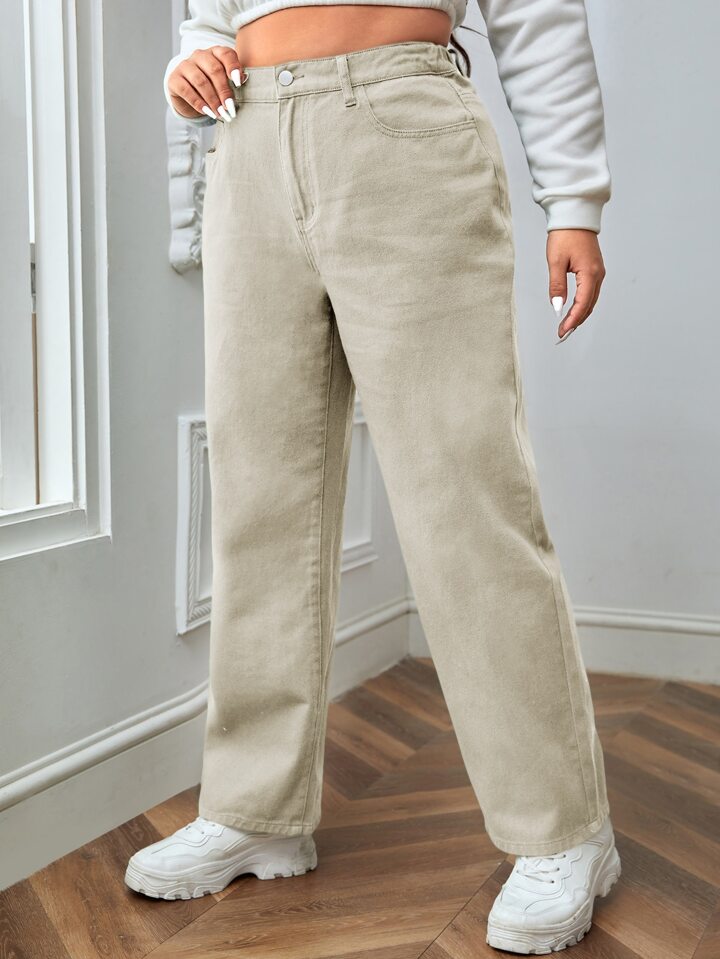 جينز بساق مستقيم خصر عالي مقاس كبير