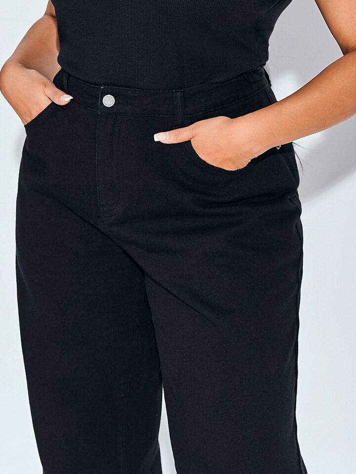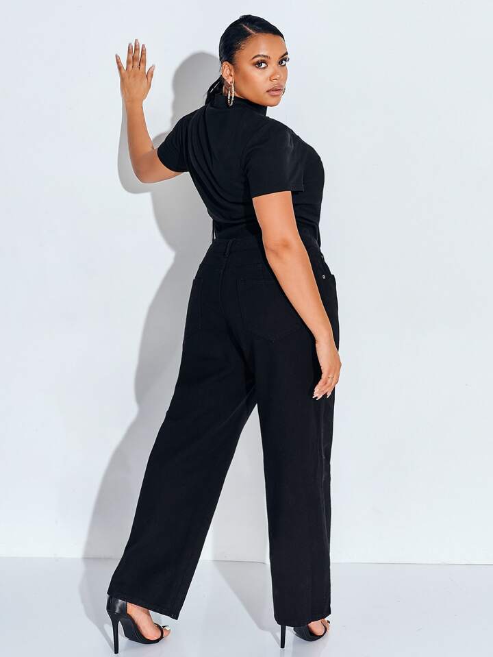 بنطلون جينز بساق واسع عالي مقاس كبير
