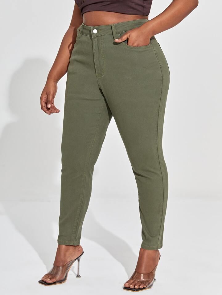 مقاس كبير بنطلون جينز نحيل خصر عالي موحدة اللون