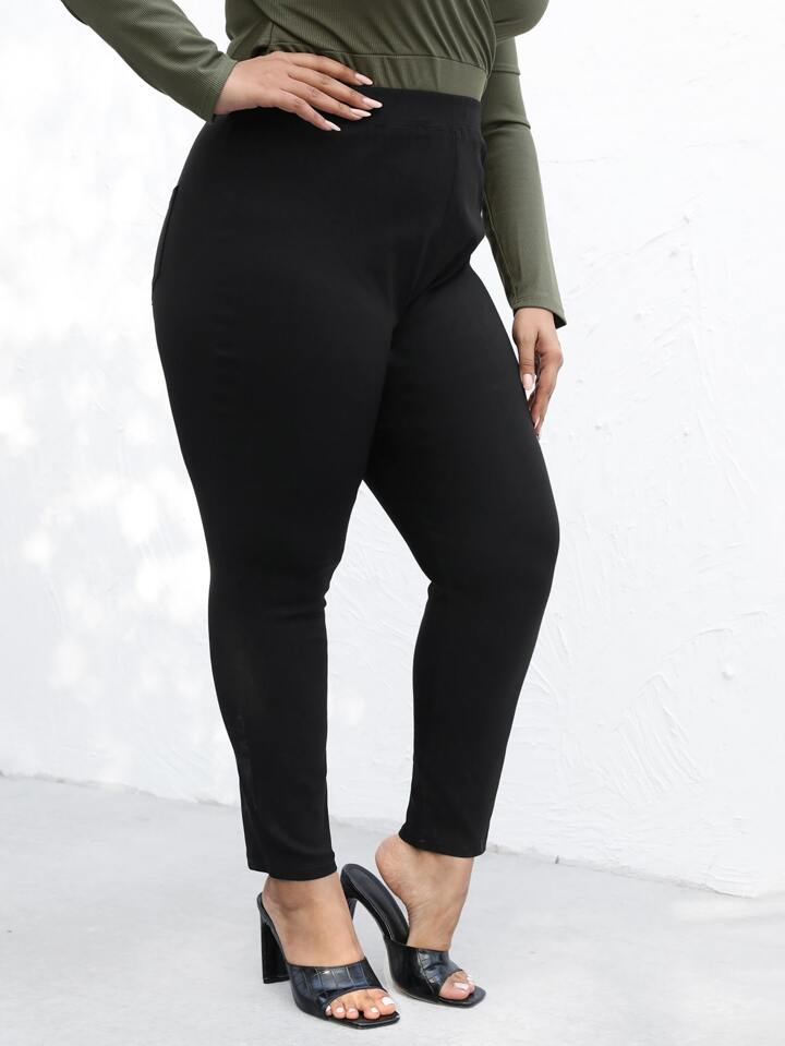 بنطلون نحيل بلون موحد مقاش كبير بخصر عالي