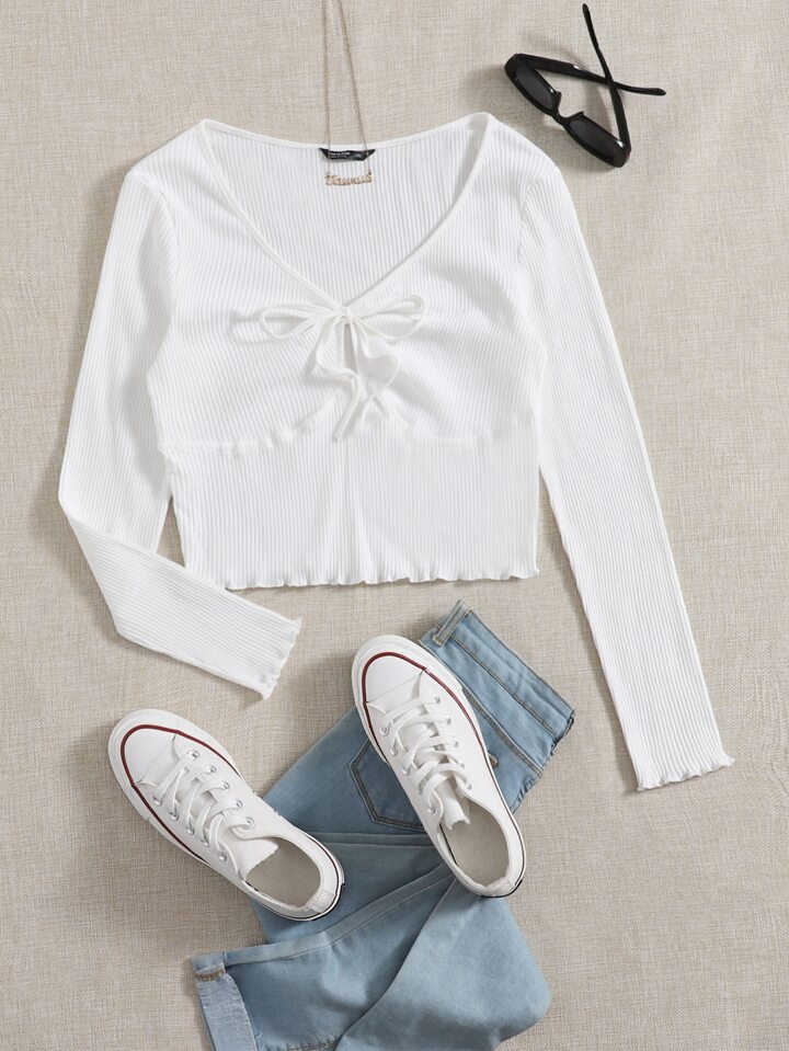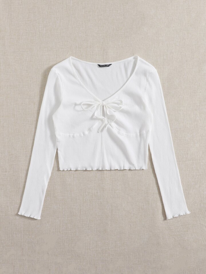 تي شيرت محبوك مضلع مقلم خس ومعقود امامي مقاس كبير