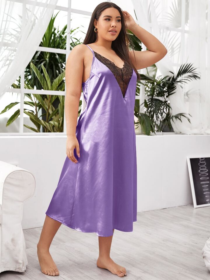 فستان ليلي بحمالات بحمالات ساتان بلوحة دانتيل مقاس كبير