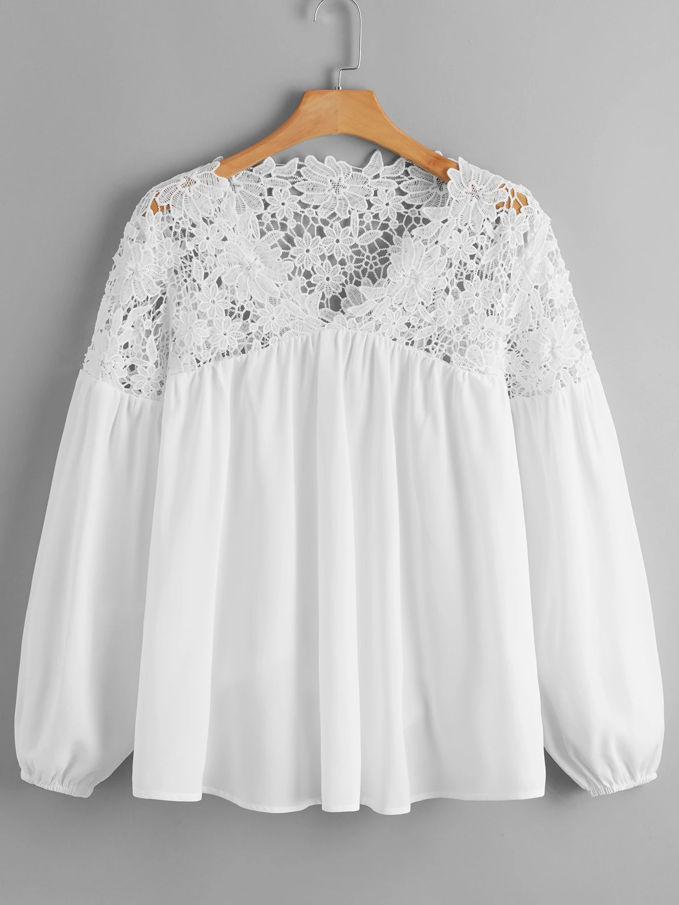 بلوزة مقاس كبير باكمام اسقف بصدر بدانتيل