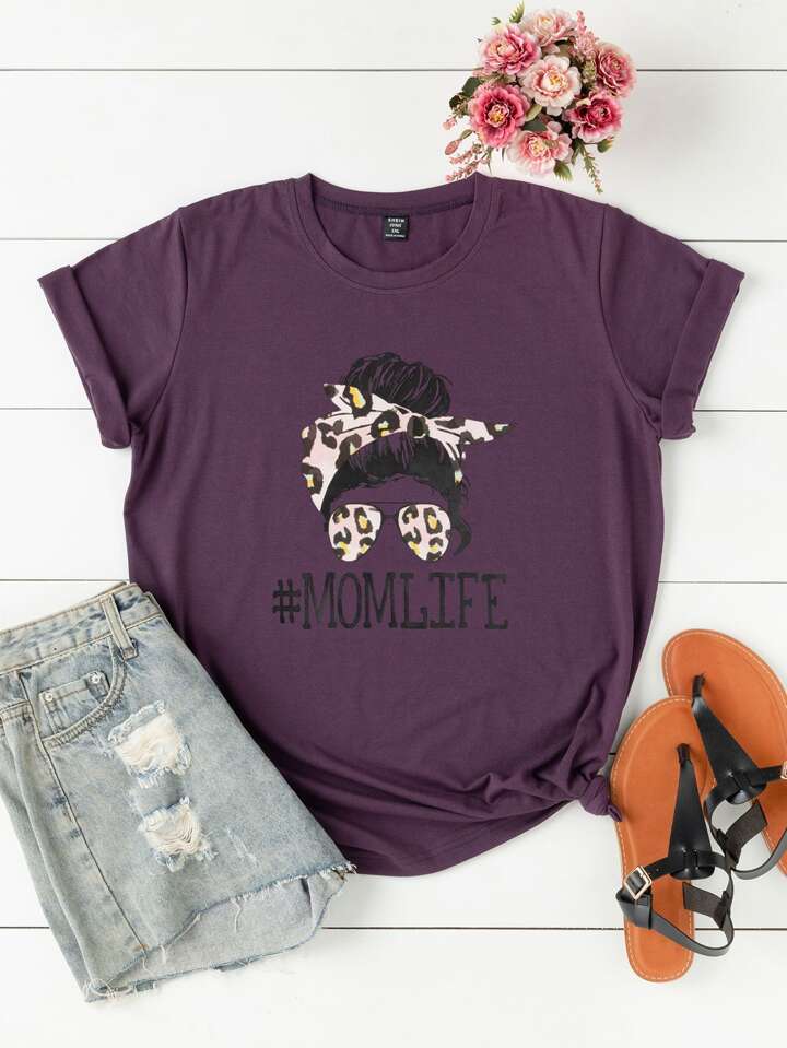 تي شيرت بجرافيك شكل وعبارة مقاس كبير