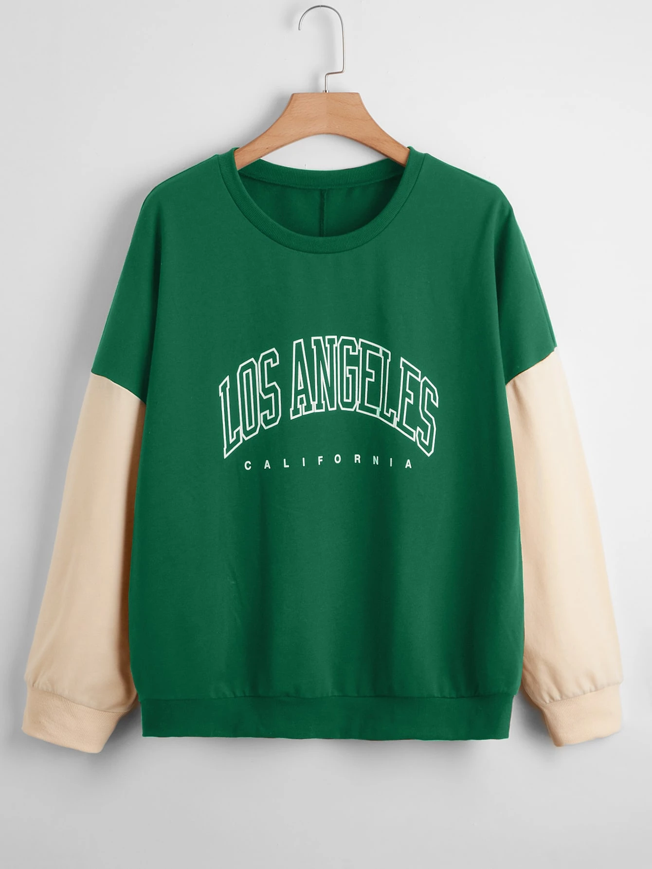بلوزة ثقيلة مقاسات كبيرة حاجز اللون رسالة كاجوال