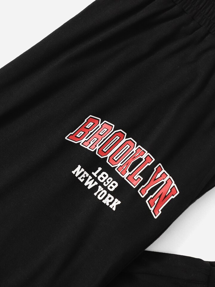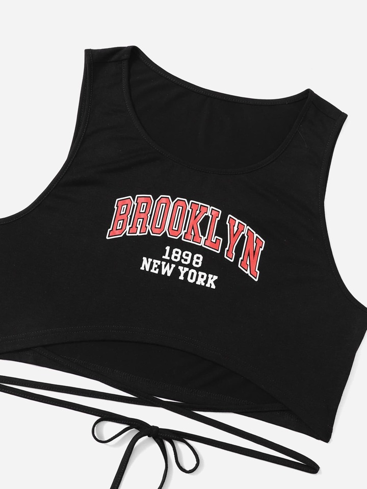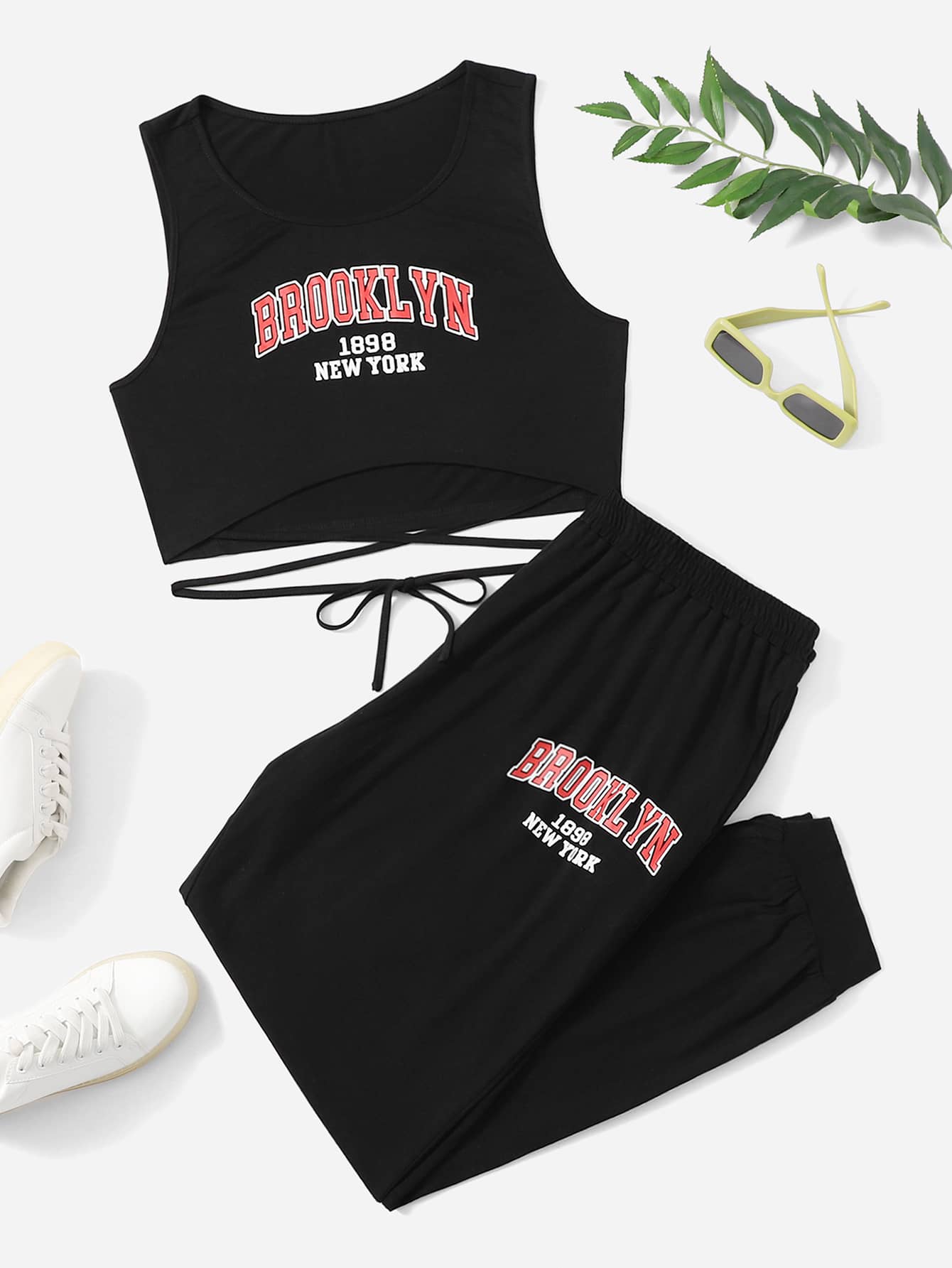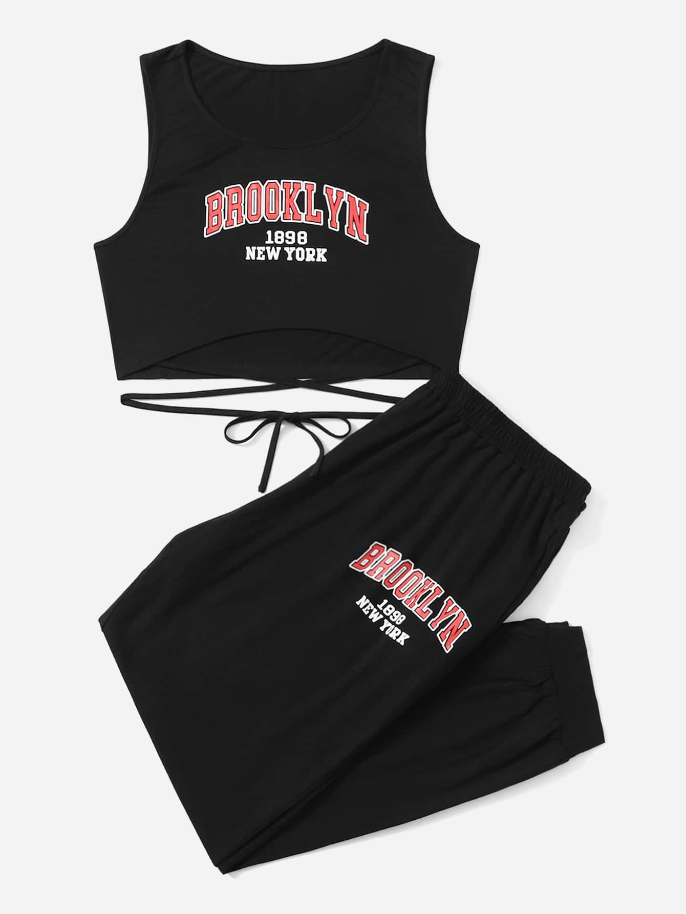 لباس علوي تانك بطباعة أحرف متقاطع بربطة ظهر مع بنطلون رياضي مقاس كبير
