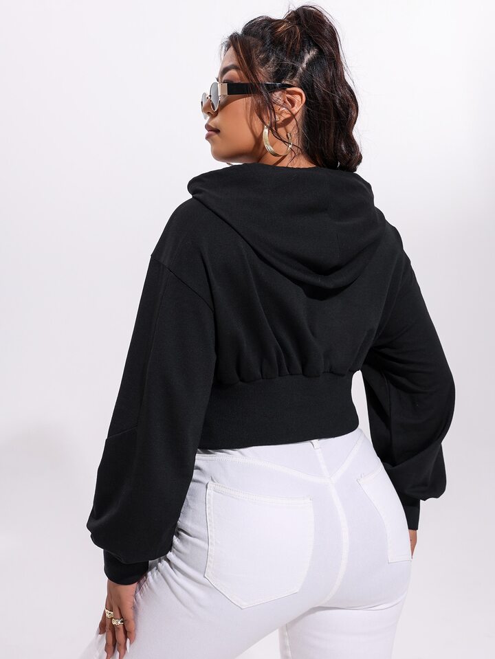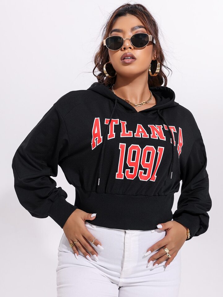مقاس كبير هودي طباعة أحرف قصير رباط