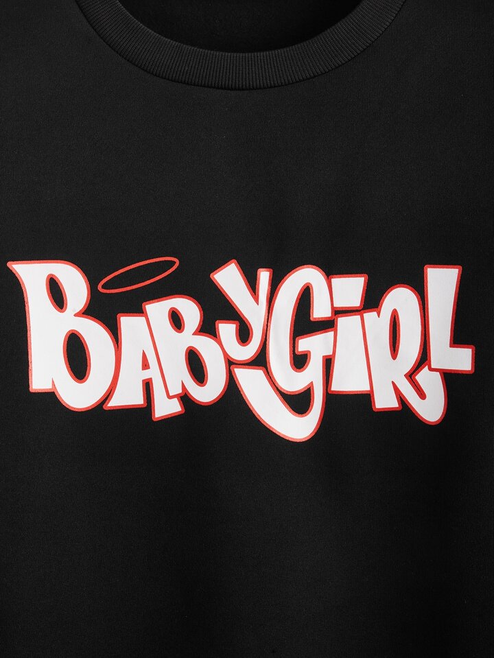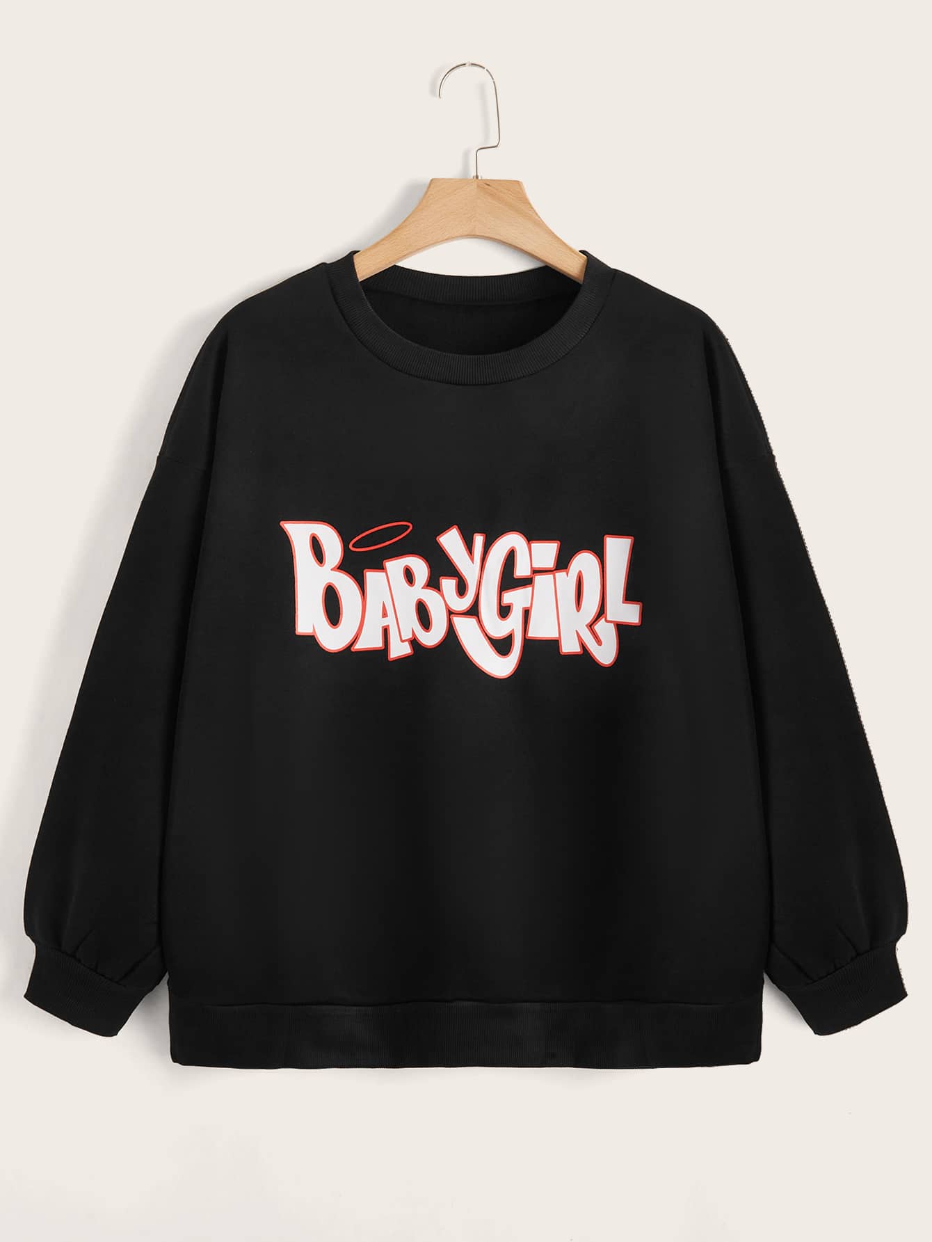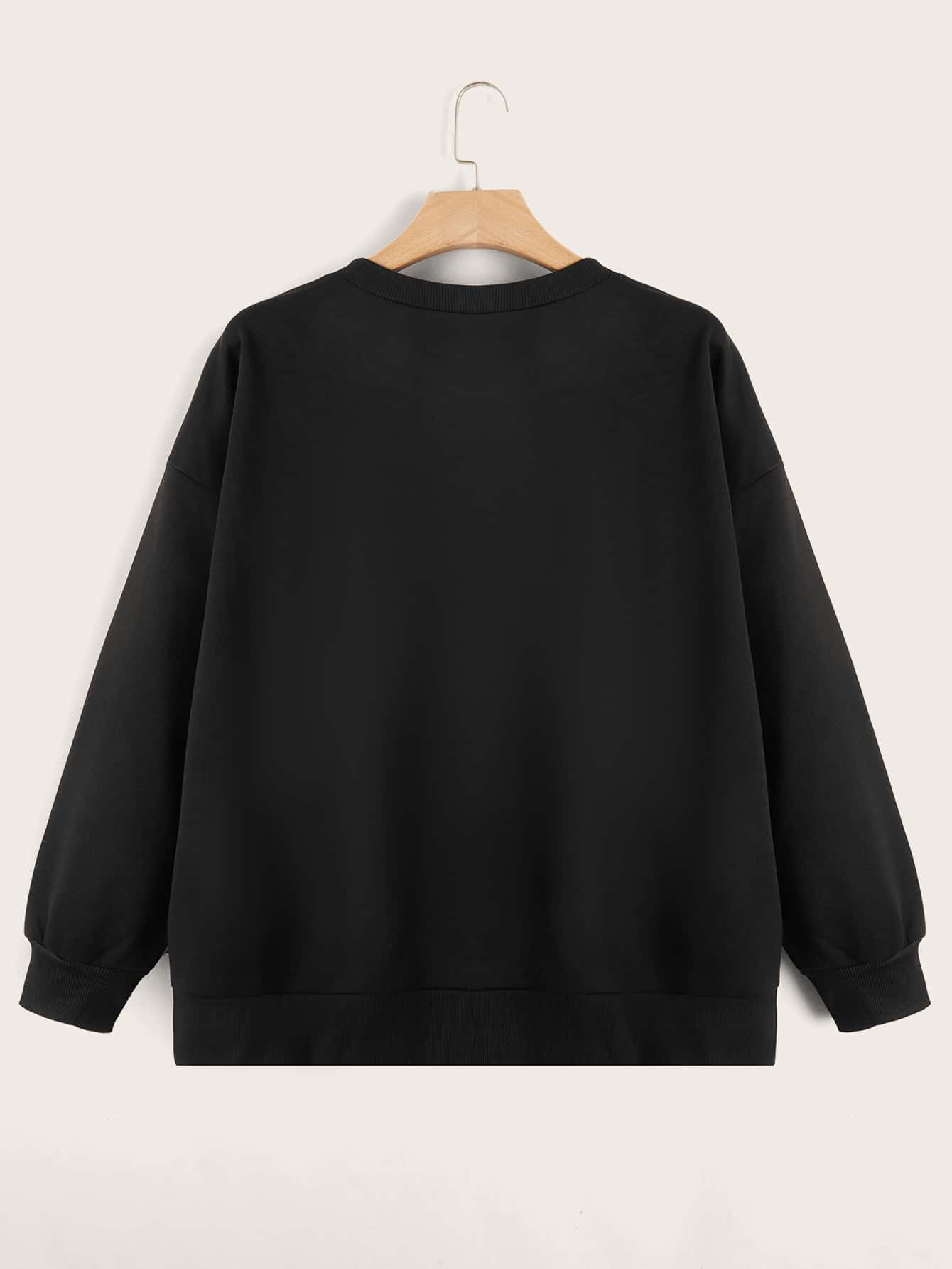 مقاس كبير بلوفر بطباعة أحرف منخفض الاكتاف