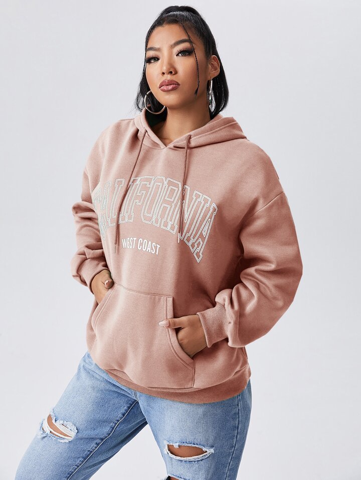 بلوزة ثقيلة مقاسات كبيرة الرباط الجيب رسالة كاجوال