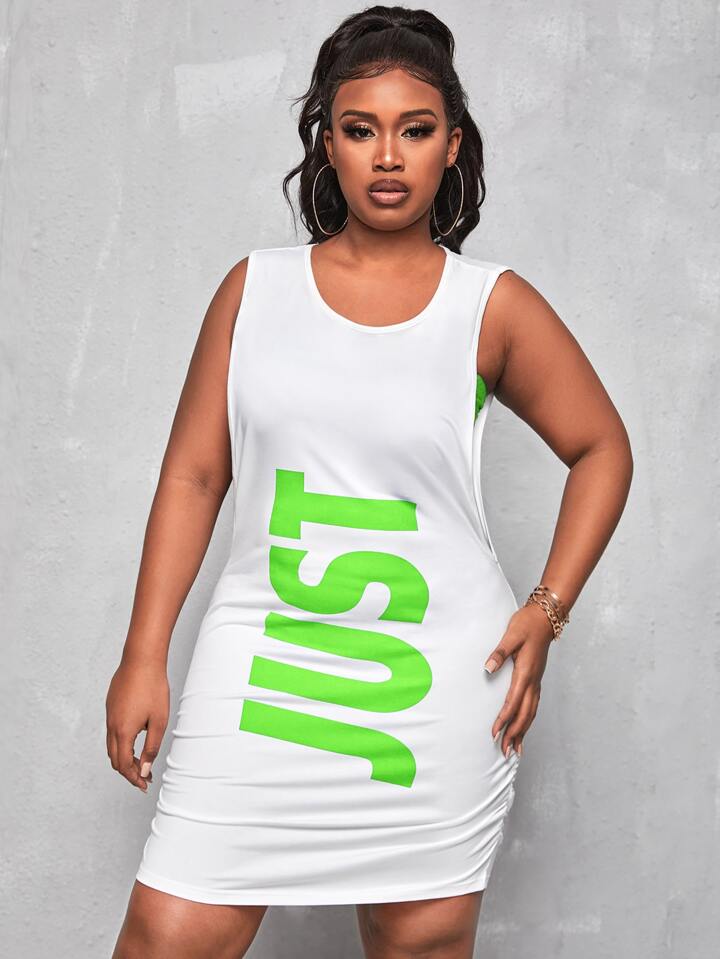 مقاس كبير بطباعة أحرف ثنية فستان مناسب مع لباس علوي بدون حمالات