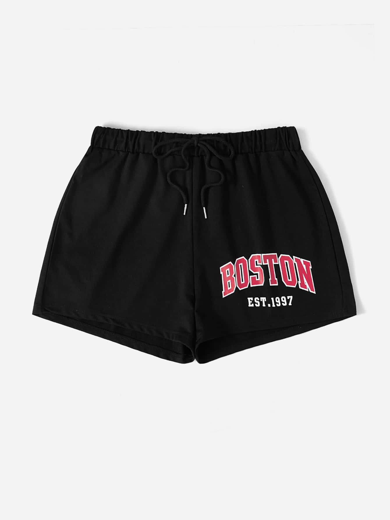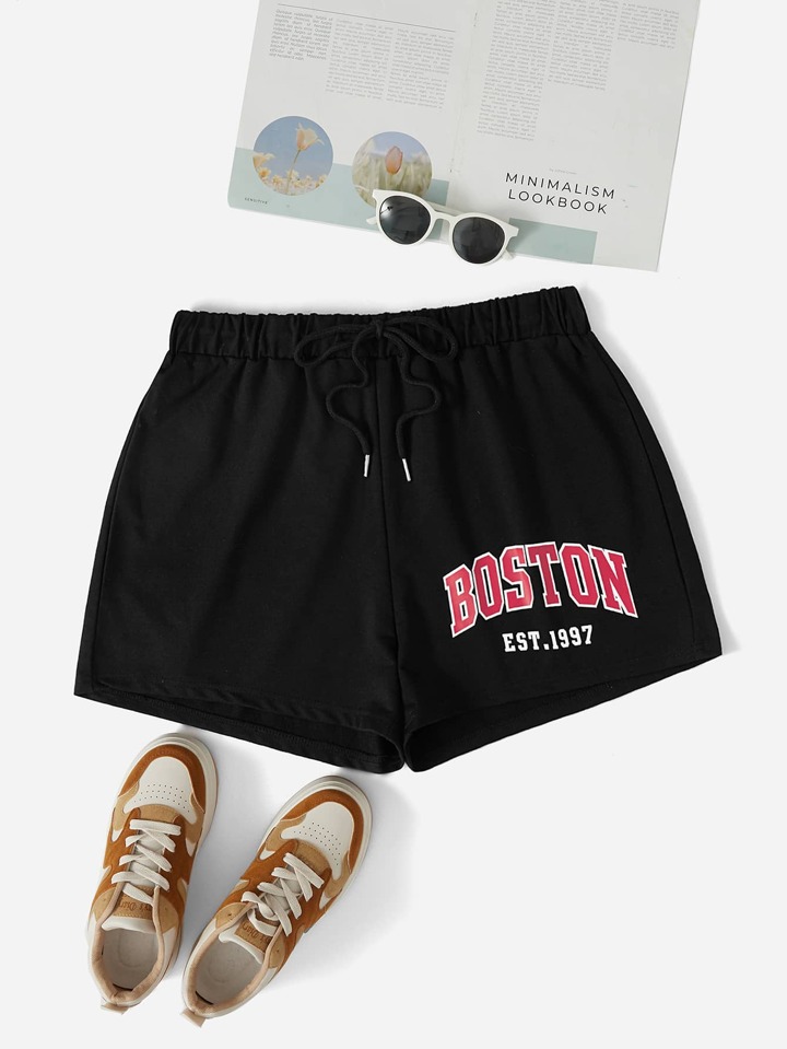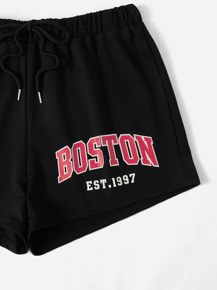 بنطلون قصير بطباعة أحرف بربطة خصر مقاس كبير