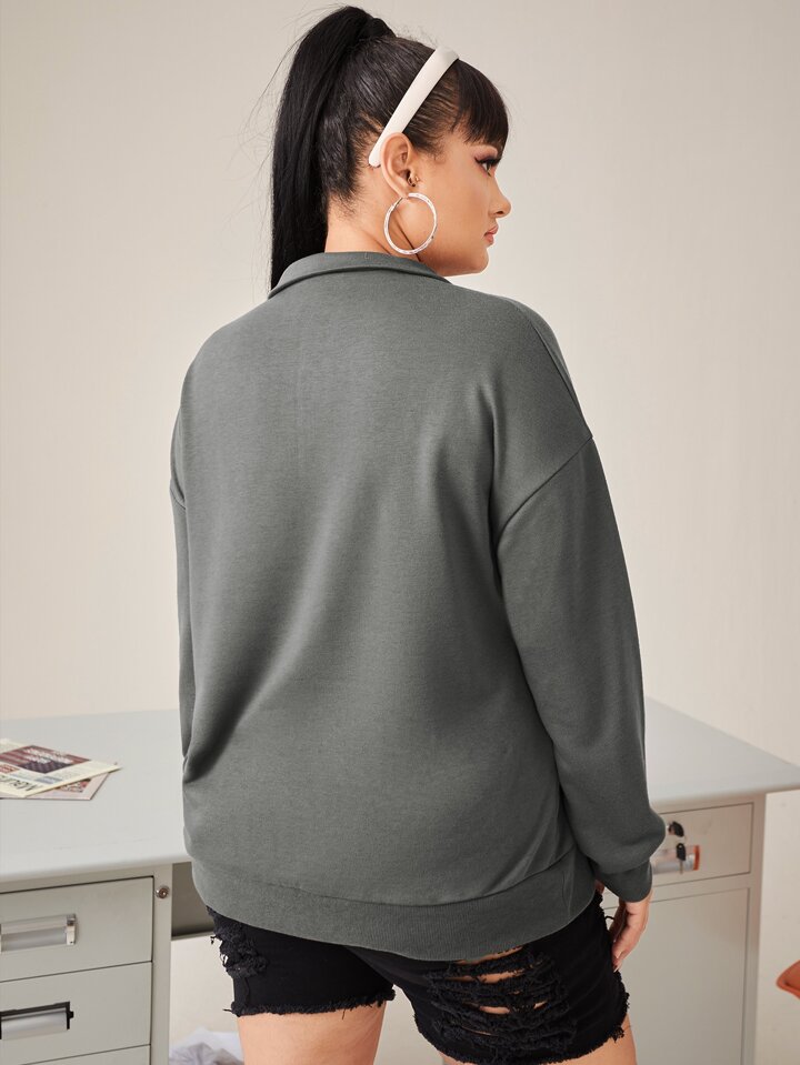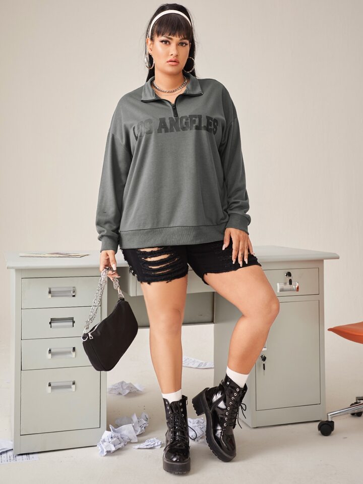 مقاس كبير قميص ثقيل طباعة أحرف سحاب ياقة