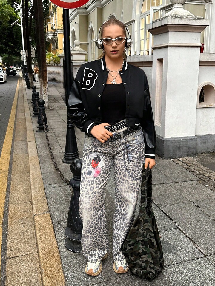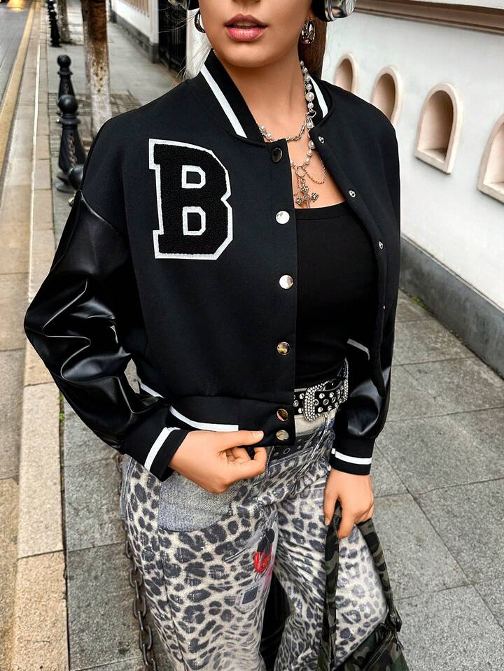 جاكيت بومبر مدرز بعبارة مقلم مخطط منخفض الاكتاف قصير مقاس كبير