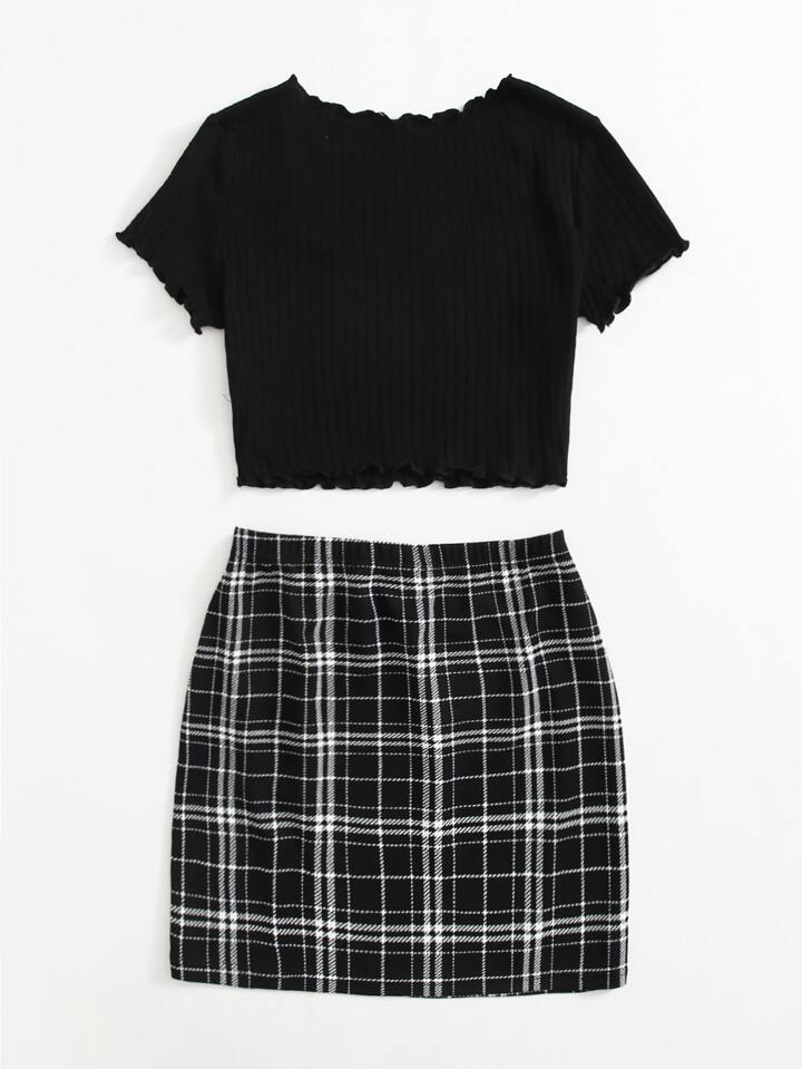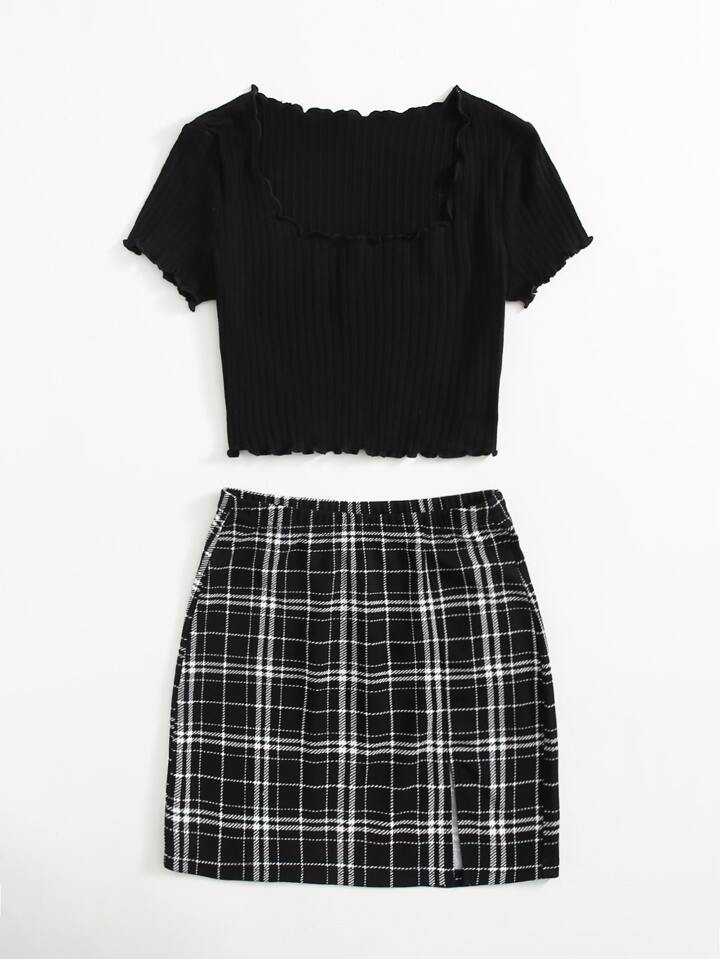 طقم التنورة المربعة وتي شيرت اللتز الأكبر، صيفي