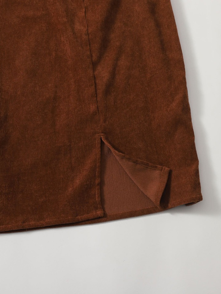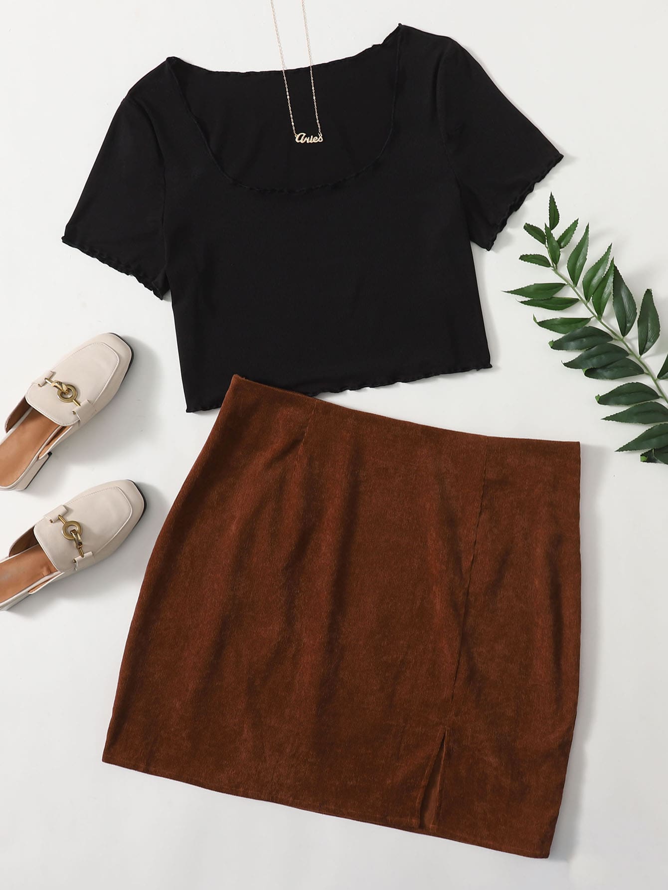طقم تنورة قطني بحافة مشقوق مع تي شيرت مقلم خس مقاس كبير