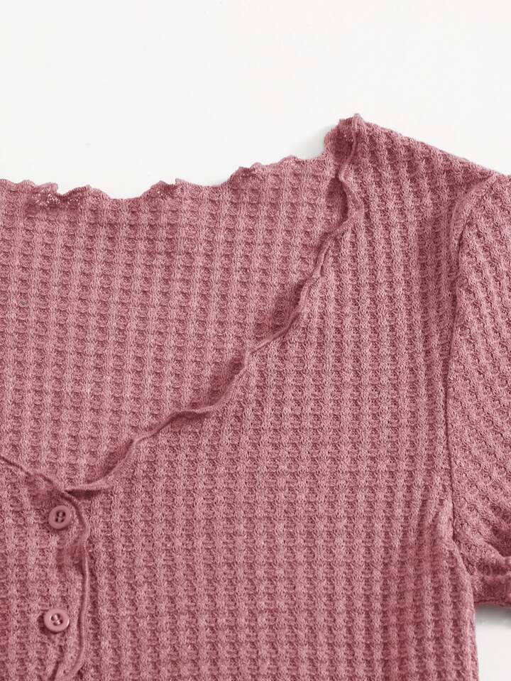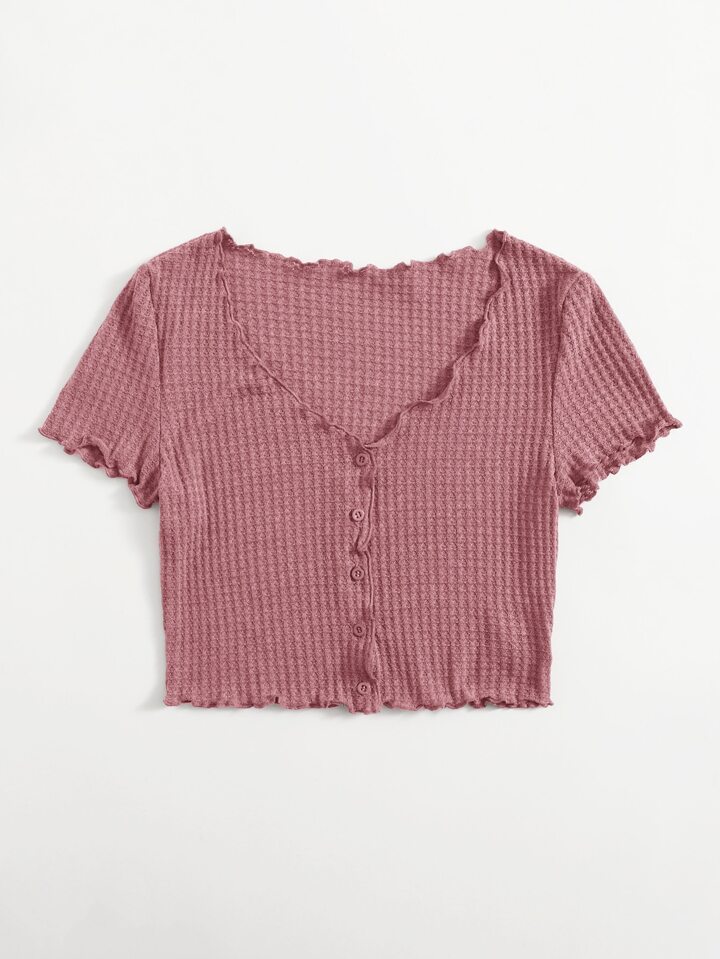 مقاس كبير تي شيرت مقلم نمط نبات الخس منسوجة وافل