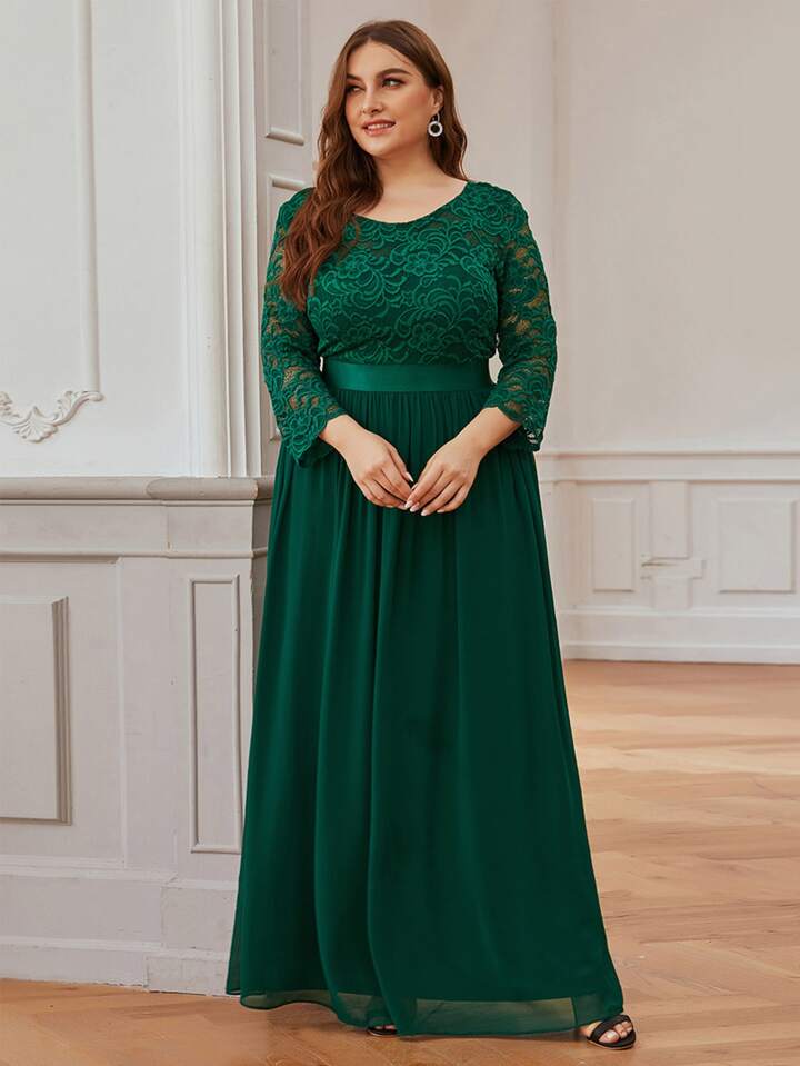 فستان وصيفة العروسة عارية الذراعين بصدر دانتيل شيفون مقاس كبير