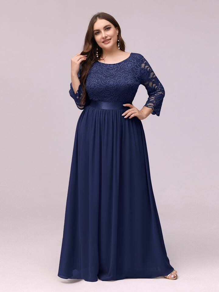 فستان وصيفة العروسة عارية الذراعين بصدر دانتيل شيفون مقاس كبير