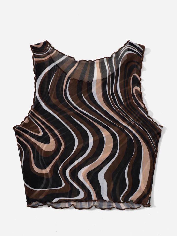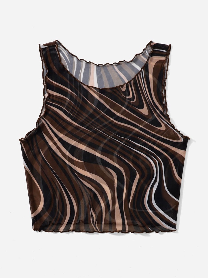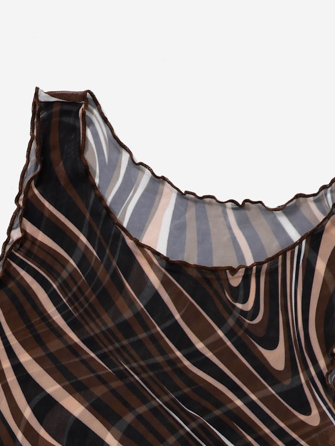 لباس علوي تانك شبكي مقلم بنمط الخس رخامي مقاس كبير