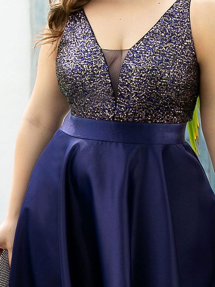 فستان سهرة حرير ناعم عالي منخفض مع إدراج شبكي ولامع للخصر، لأناقة الحضور في المناسبات الرسمية والسهرات والحفلات التخرج وسهرات العشاء