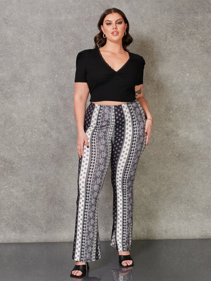 سروال فضفاض ذو أرجل مزخرفة متعددة الطباعة لموسم الصيف