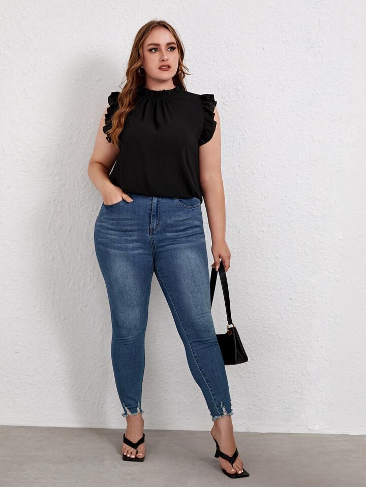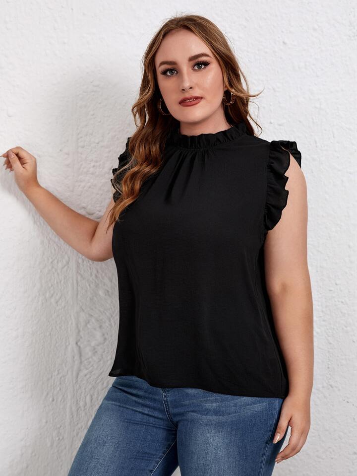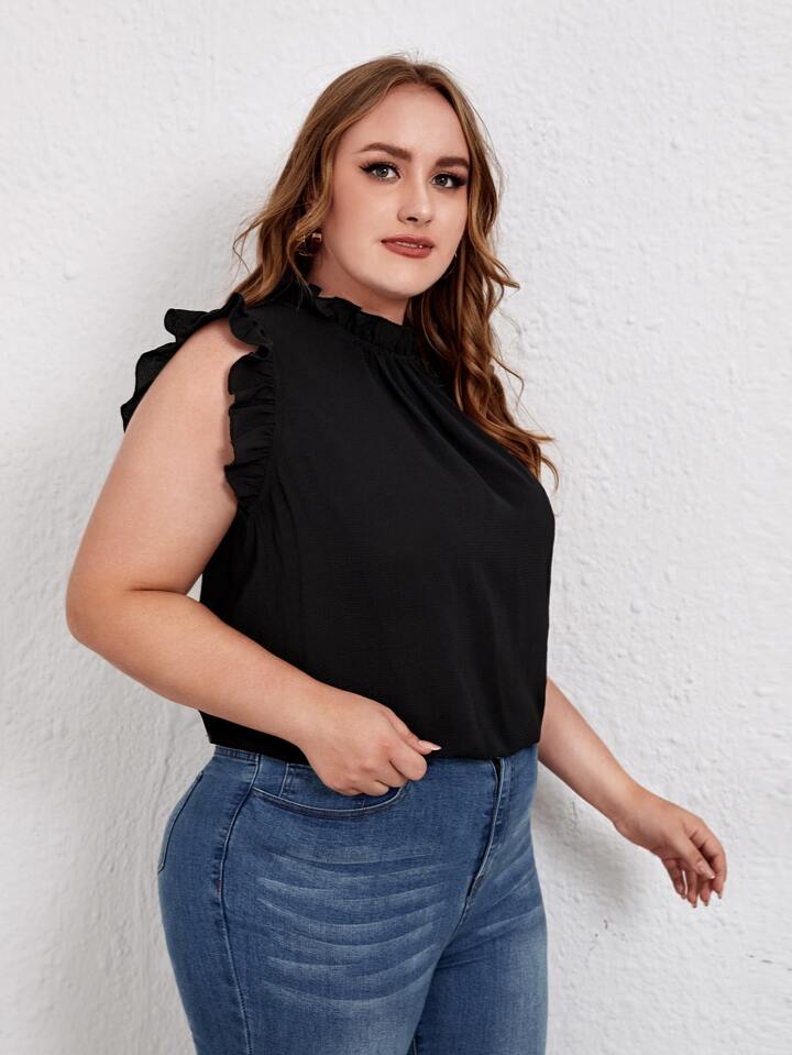 بلوزة مقلم بكشكش مقاس كبير بياقة دائري