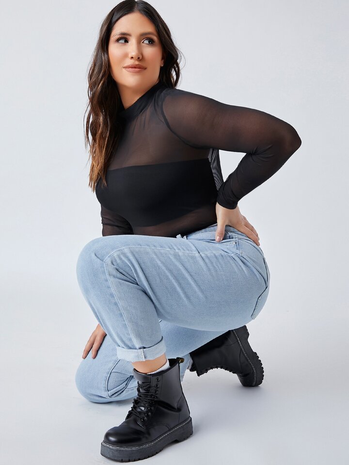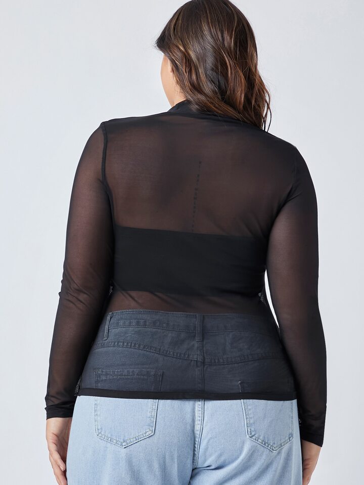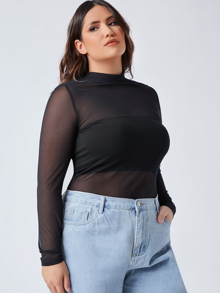 ملابس علوية شبكية شفافة بياقة عالية بدون ملابس علوية داخلي