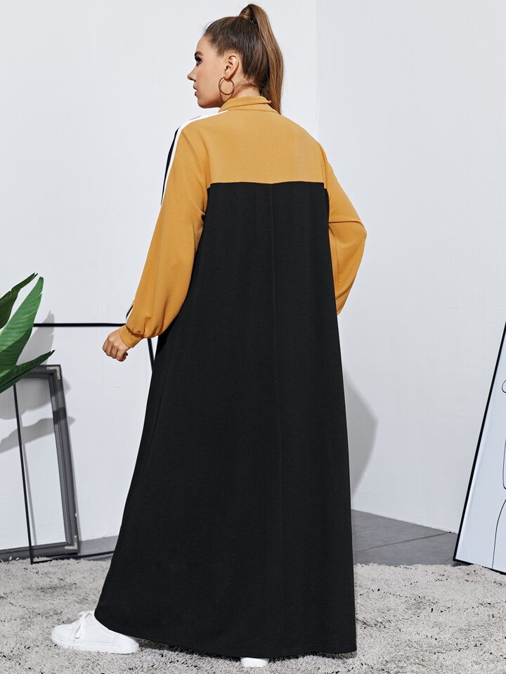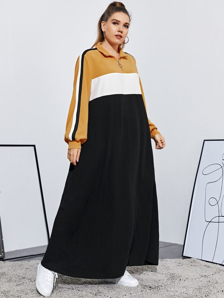 فستان مخطط جانبي بألوان متجانس بسستة وحلقة مقاس كبير