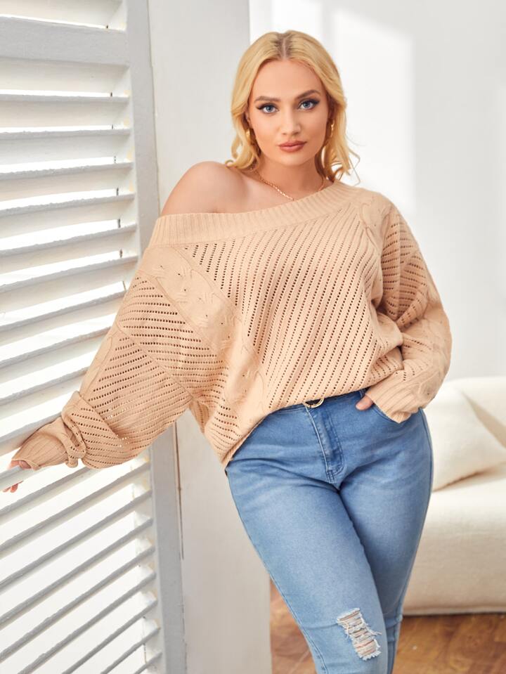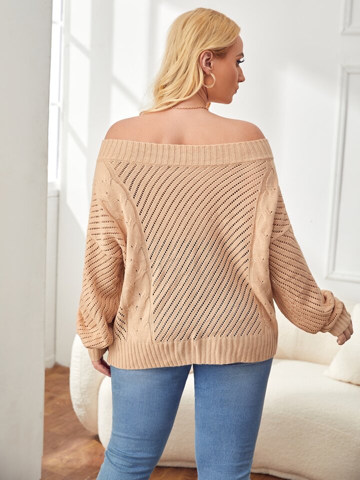 مقاس كبير كنزة صوف مكشوف الكتف اكمام جناح الخفاش منسوج مضفور
