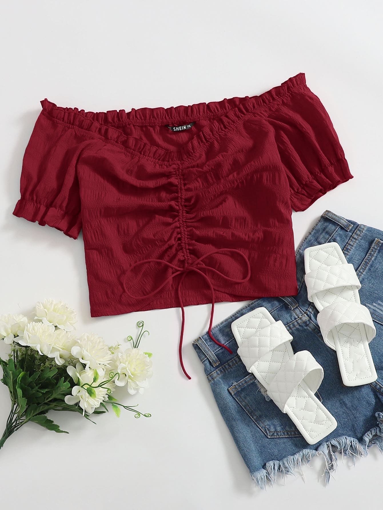 لباس علوي مدروز من الامام باربطة مقلم مكشكش ومكشوف الاكتاف مقاس كبير