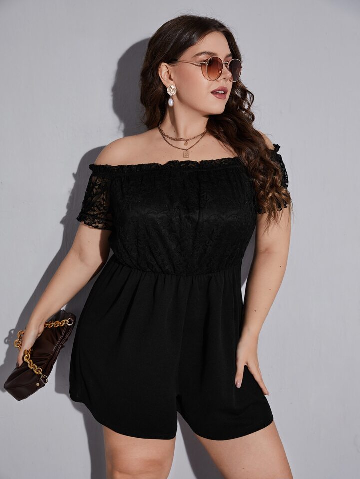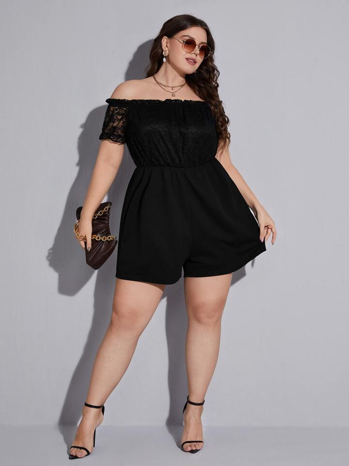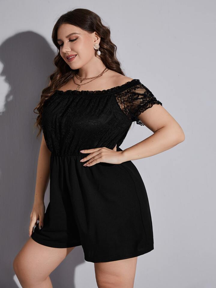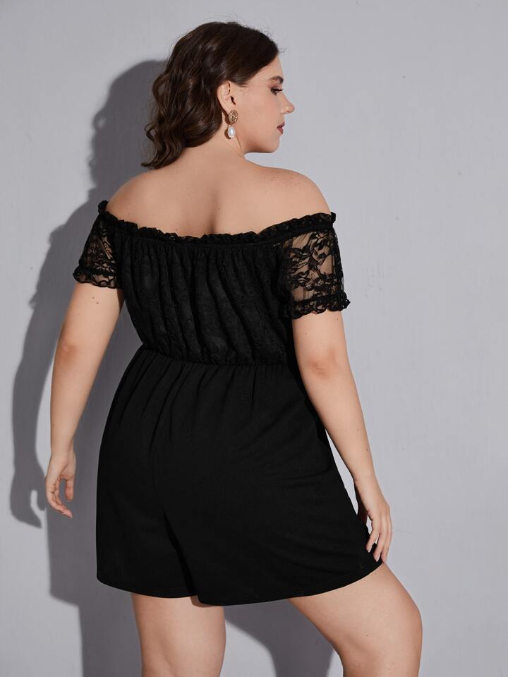 مقاس كبير رومبير كتف مكشوف دانتيل متباين اللون
