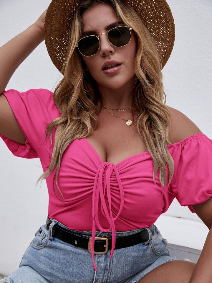 تي شيرت برباط امامي وبكتف مكشوف مقاس كبير